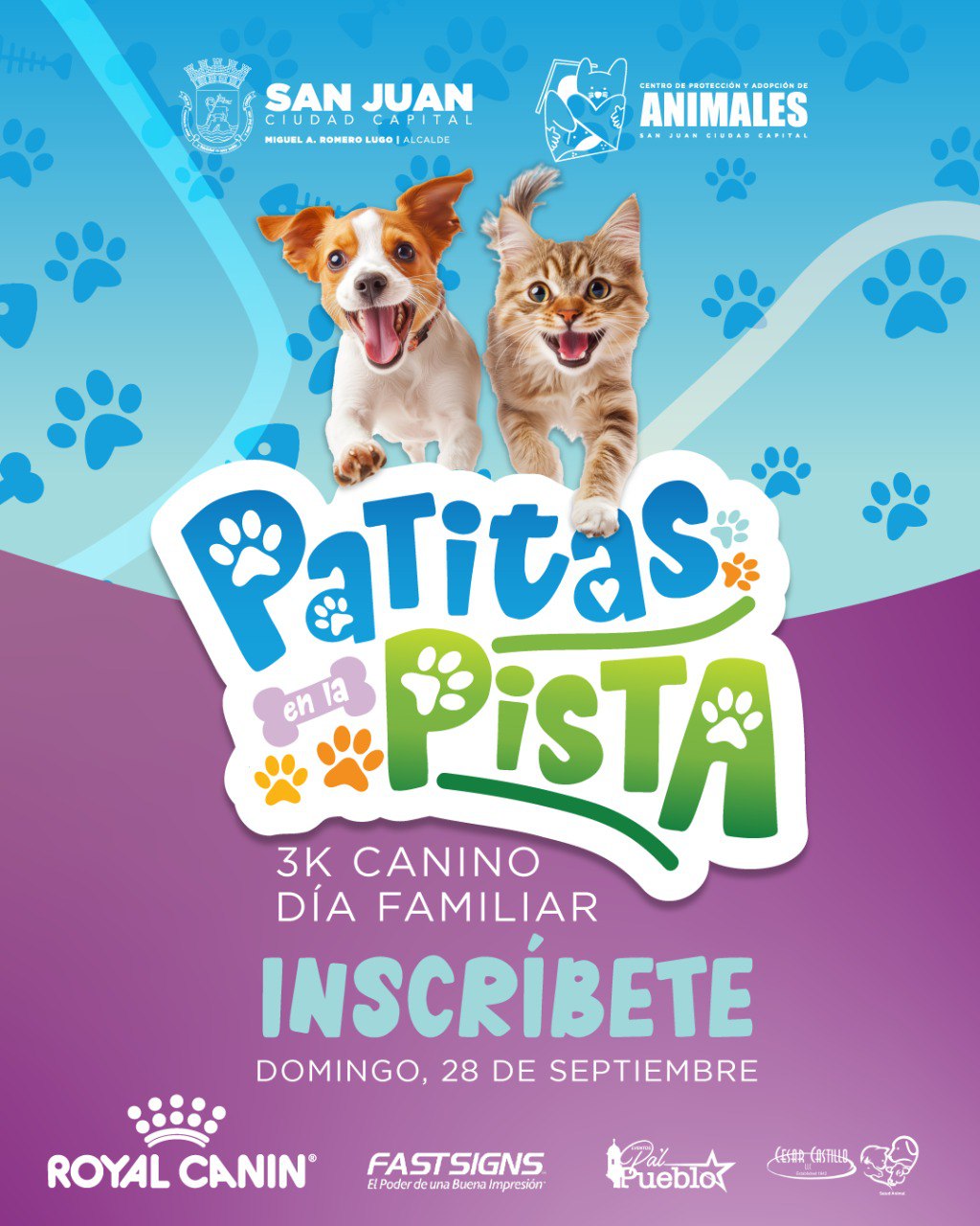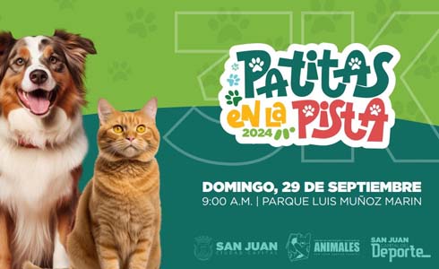 Detalles del evento: Fecha: Domingo, 28 de septiembre de 2025 Lugar: Parque Luis Muñoz Marín Hora de salida de la carrera: 8:00 a.m. Apertura de puertas: 6:30 a.m. Cierre de acceso vehicular: 7:45 a.m. Límite de participantes: 150 personas Premiación:Primeras 15 personas que completen la carrera con sus mascotas recibirán un certificado de vacunación otorgado por el Centro de Control y Adopción de Animales.Los tres primeros lugares recibirán, además, una canasta de artículos valorada en $200. Información adicional: Actividad posterior para el disfrute de toda la familia. Entrada libre de costo. Estacionamiento: $3.00 por vehículo.ck